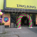 Voor de meeste gelegenheden is dit een ballonnenboog van 6 meter (enkele deur) of een ballonnenboog van 7 meter (dubbele deur). Uiteraard zijn ook grotere en kleinere bogen mogelijk.
