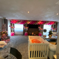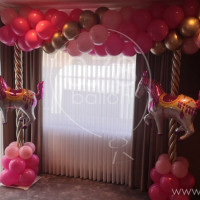 Over de gehele breedte van de woonkamer werd een draaimolen opgebouwd. Een ballonslinger over de gehele lengte tegen het plafond en 4 pilaren met draaimolen paardjes evenredig verspreid over de ruimte. Uiteraard alles in het roze... het was tenslotte een meisje geworden.